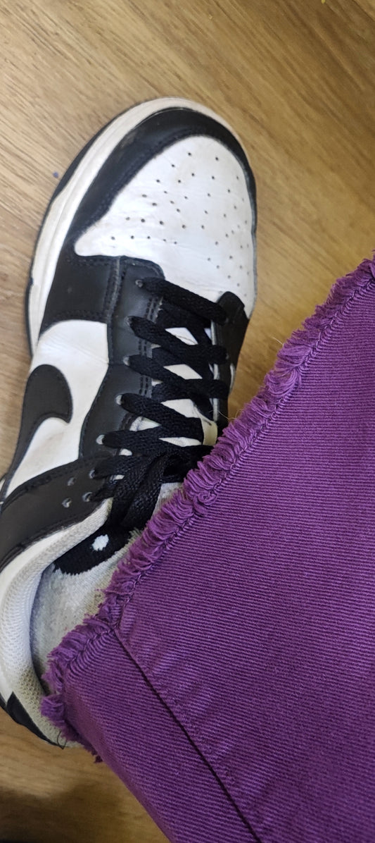 Jeans palazzo viola sfrangiato infondo